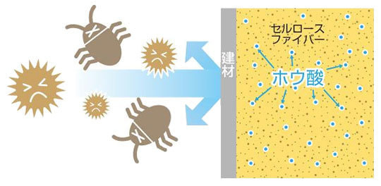 セルロースファイバーには、殺菌剤や殺虫剤として使用されるホウ酸が