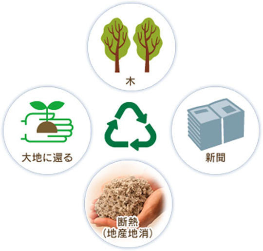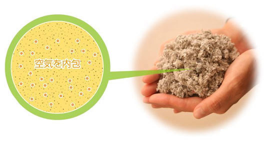 新聞紙をリサイクルした地球にやさしい断熱材です。
