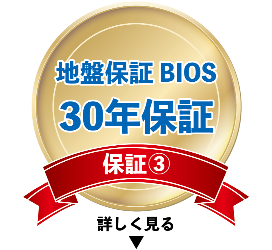 調査の結果、地盤改良の必要が「あり」「なし」どちらに判定されても不同沈下(基礎や構造物が傾いて沈下すること)に起因する、建物の損害に対する現状復帰のための費用をお引渡し日より30年間、保証内容に合わせて1事故につき最大5,000万円まで保証します。