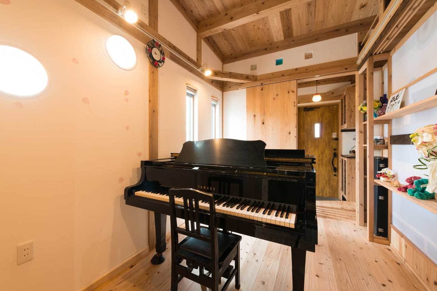 「子育てがひと段落したら、ピアノ教室を開きたい」という奥様のために、ピアノ室も確保。玄関から直接ピアノ室に行けるよう、動線を配慮。