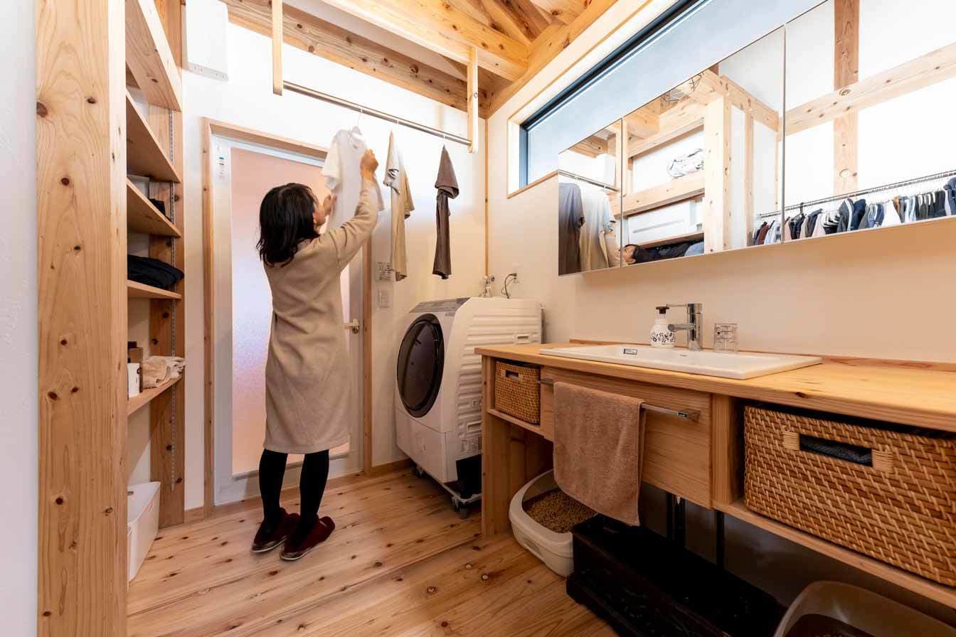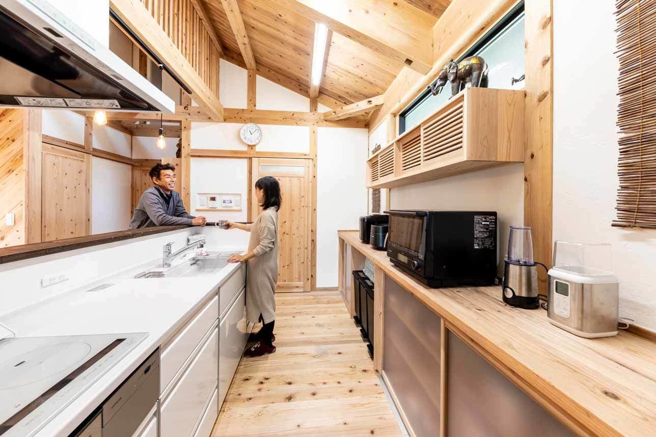 以前は両親と同居していましたが、「猫たちがのびのびと過ごせる居場所をつくってあげたい」との想いから、実家の敷地の一角に自分たちの家を建てることにしました。昔ながらの木造りの家で生まれ育ったご主人にとって、無垢材や漆喰といった自然素材はあくまでも大前提。そのうえで、家づくりのパートナーはデザインで決めたそうです。「訪問した数社の中で、もっとも施工例がよかったのがハート工夢店だったんです。ここなら、自然素材でインパクトのある家を建てられると思いました」。