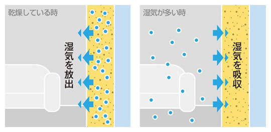 最大の特徴は、木質繊維が持つ吸放湿性です。換気やエアコンに頼らなくていい、快適な室内環境を実現します。