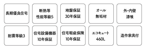 国が定めた行政の認定を受けた住宅のことで、長期にわたって安心・快適に住み続けられるお家です。断熱等級5をクリア。ZEH水準の断熱基準と同等です。